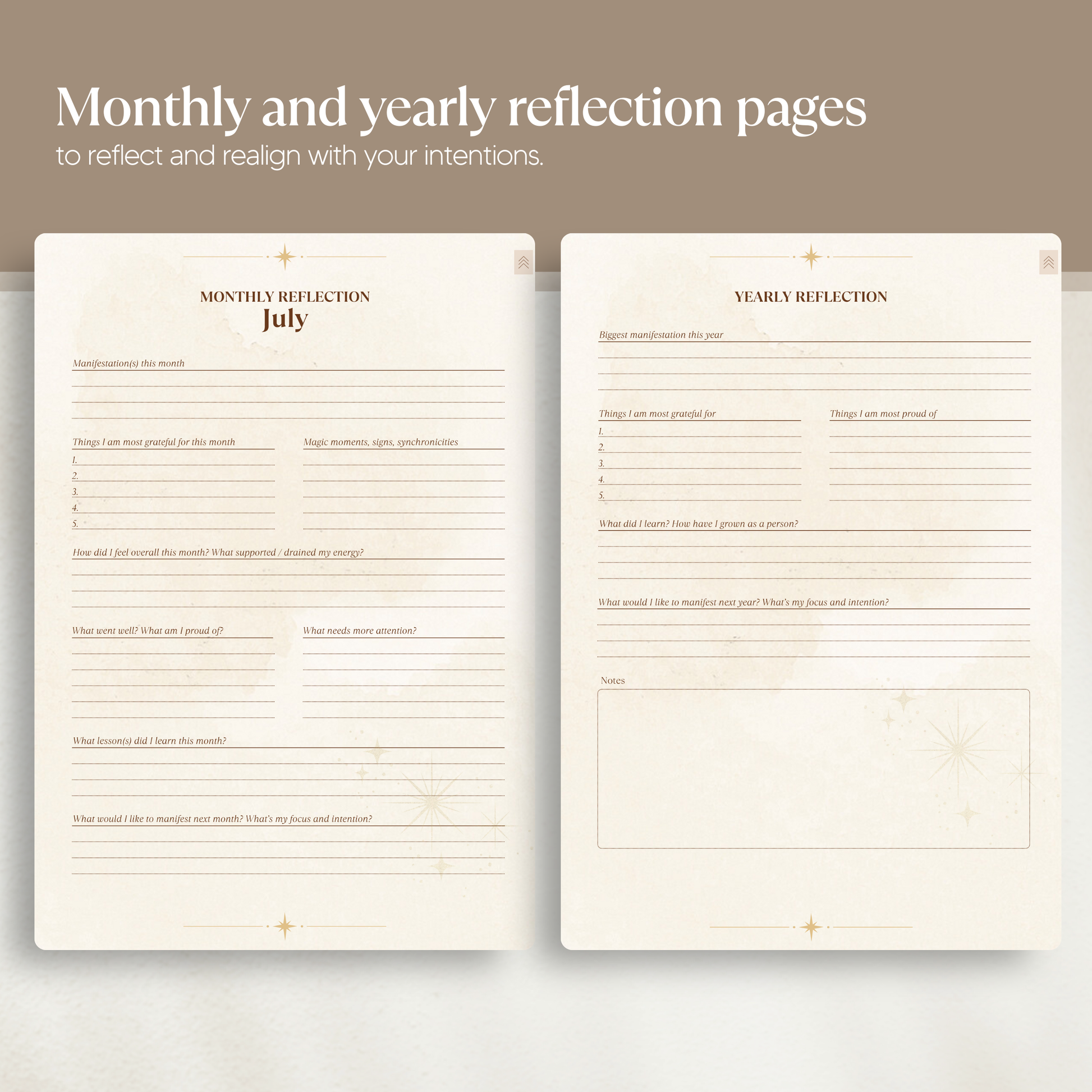 ✦ Reflection Pages – Monthly and yearly reflections to celebrate wins, release what no longer serves you, and stay aligned with your goals.